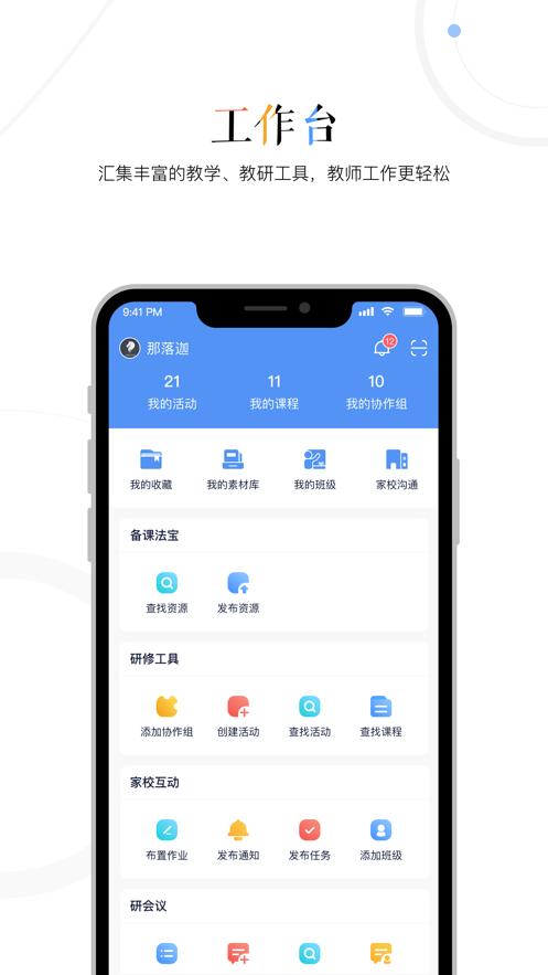为用户提供日常研修、家校沟通、社区互动等工具;