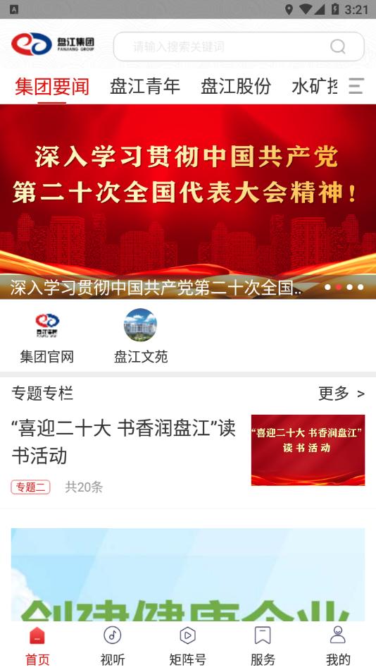 盘江煤电app下载是盘江煤电集团官方倾情推出,软件拥有新闻资讯,视听,矩阵号,服务,我的等等功能板块,可以更好的引导及服务盘江煤电。