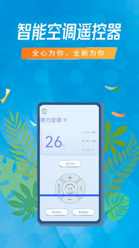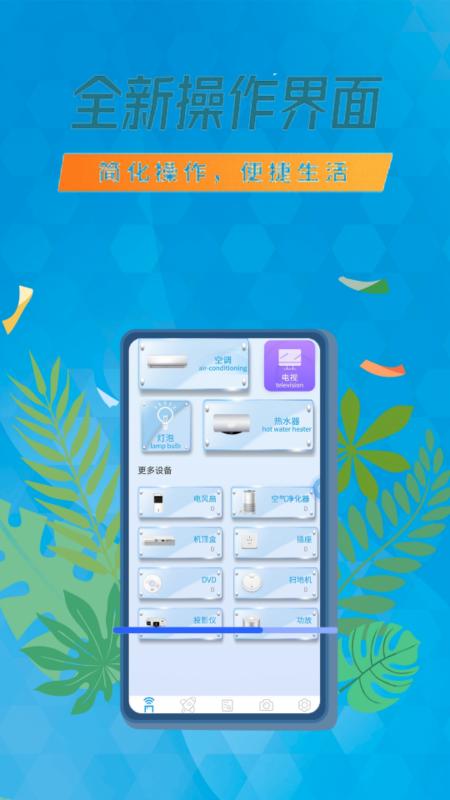 空调遥控器智能通用是一款功能强大丰富的遥控家居软件,支持多种遥控方式,海量品牌家电,一键可以控制空调、电视、灯泡、热水器、电风扇、空气净化器、机顶盒、插座、DVD、扫地机器人、投影仪、音响功放等各类家电