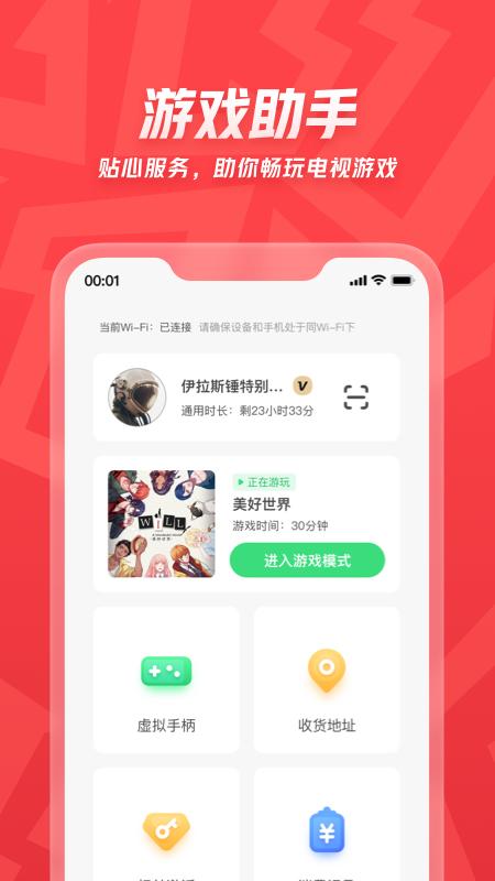 2、咖哒手机App,为玩家在电视上畅玩咖哒App内游戏提供助手服务。