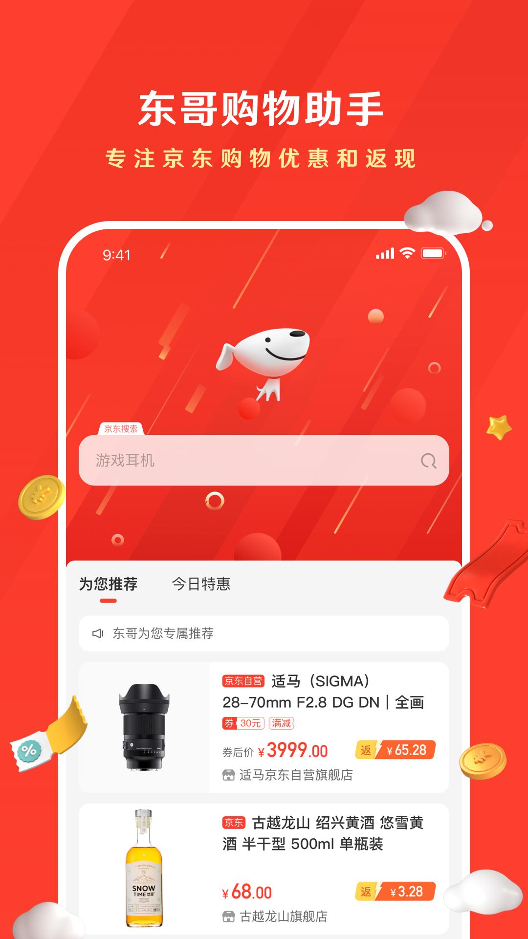 东哥购物助手APP帮大家方便快捷的获得京东返现和内部优惠券,致力为大家提供更好的购物体验。