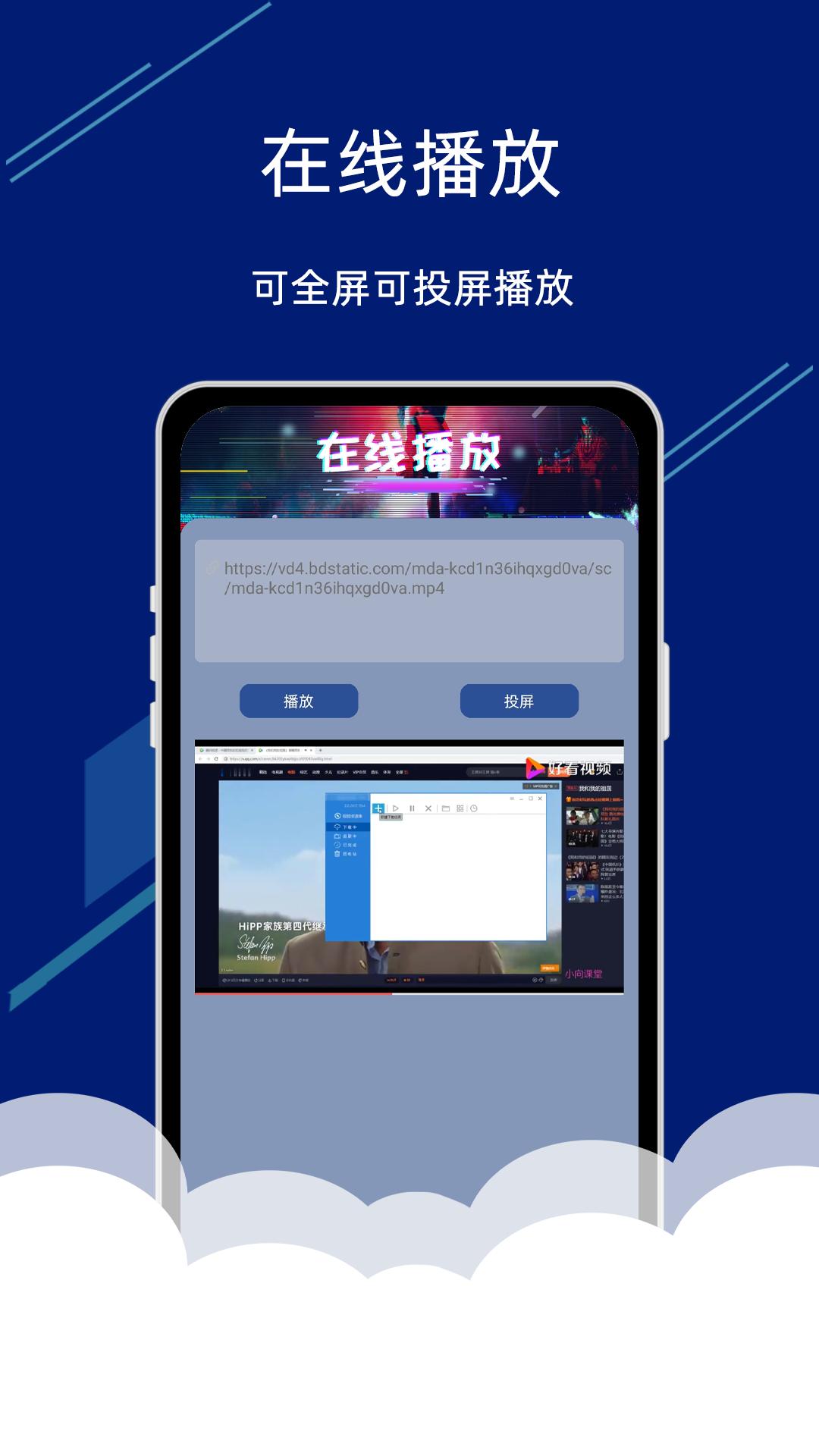 在线播放:输入以‘http/https:’开头的视频链接,点击投屏按钮即可投屏该视频。