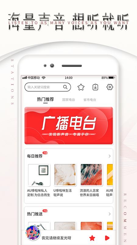 【海量电台】:支持全国所有省市电台、国家直属电台、火爆网络电台;