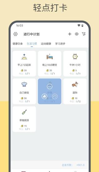 3.随时都可以设置计划来进行自我管理,完成了计划之后还可以获得金币奖励,激励自己更好的执行;