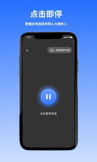 字幕单聊功能:健听人对着手机说话,可以实时将健听人的声音转换成文字,帮助听障人理解;