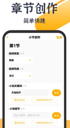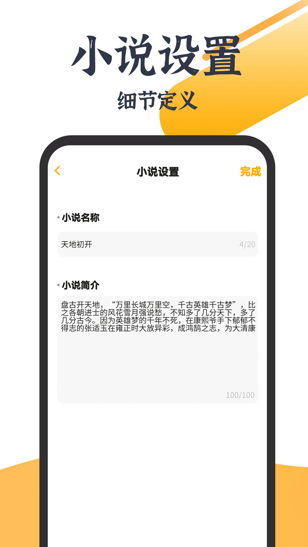AI智能写作大师app,专业的小说创作神器,输入小说名称、简介,AI自动创作小说,使用简单,轻松自定义小说风格、类型,在线创作小说,让小说创作更轻松。