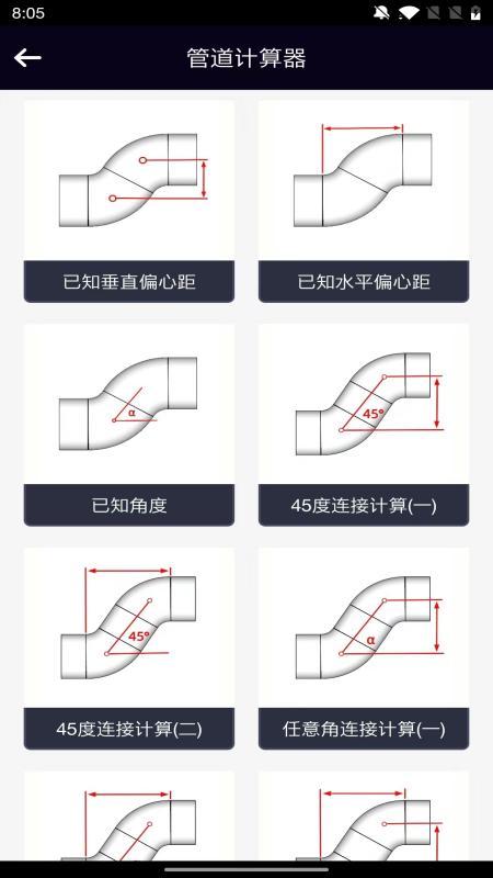 管道计算器是一款功能齐全,十分实用的应用软件。包含了弯头计算、来回弯计算、三通弯头计算、摇头弯计算、水平弯计算、空间弯计算等,对于管道工,焊工以及工程师,可以很大程度的提高工作效率,为用户带来了很大的便利。