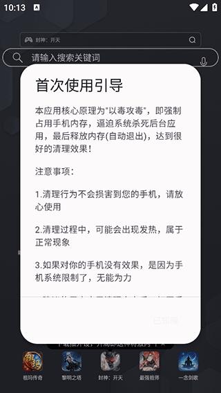 5、建议可以在玩游戏前或者用机时长太久时进行内存清理,本工具实现的清理效果比重新开机更为流畅,因为不会唤醒开机启动的应用。
