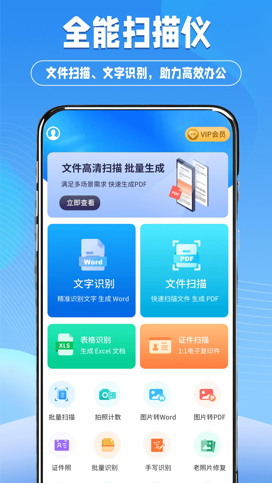 快扫扫描王是一款OCR拍照识别软件,使用手机就可以实现文字识别、手写识别、拍照翻译、文件扫描、证件扫描、表格识别、批量扫描识别、格式转换等功能,识别后的文字可以进行在线编辑调整、翻译。文字识别、表格识别、证件扫描都有体验机会,文件扫描单张免费使用,并且可导出为word、txt、PDF、图片等多种格式,是您的移动多功能扫描仪。