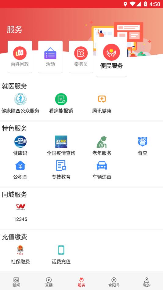 开设了新闻、直播、电视、广播、服务、“爱合阳”等栏目,整合了县域内网站、微信、微博、短视频等自媒体和部门、镇(办)、社区、村组政务服务资源。