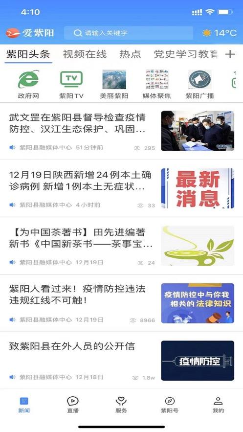 “爱紫阳”手机APP作为紫阳县融媒体中心主办的“新闻+政务+服务”综合平台,是权威的舆论宣传主阵地。开设了新闻、直播、电视、广播、服务、“紫阳号”等栏目,整合了县域内网站、微信、微博、短视频等自媒体和部门、镇(办)、社区、村组政务服务资源。用户可通过客户端,第一时间了解紫阳政治、经济、民生、服务等方面的最新动态,同时提供各种便民服务,还可参与实时互动,实现“一端在手,尽享智慧”。