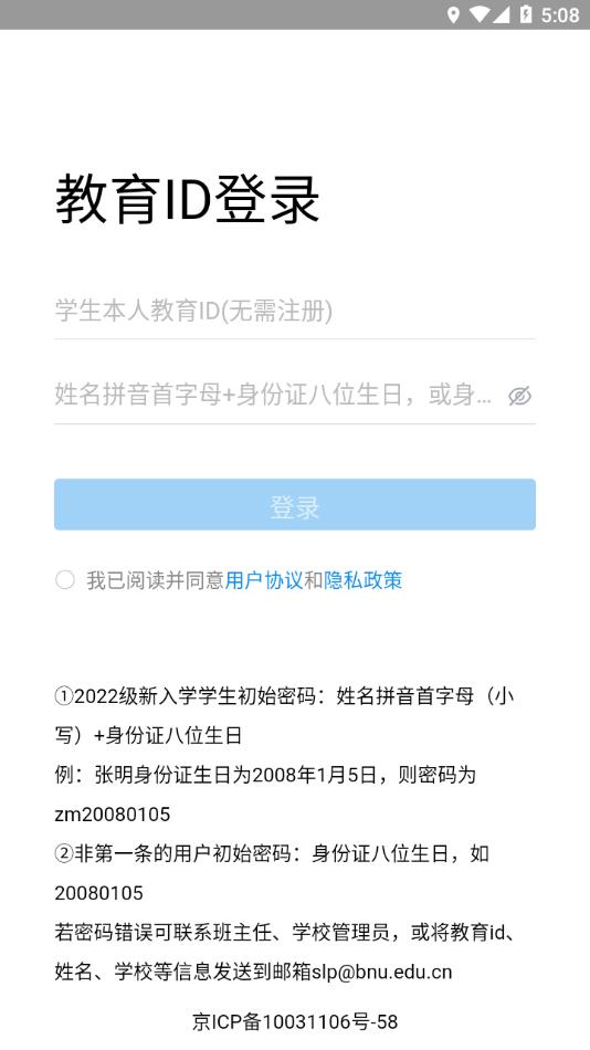 若密码错误可联系班主任、学校管理员,或将教育id、姓名、学校等信息发送到邮箱slp@bnu.edu.cn