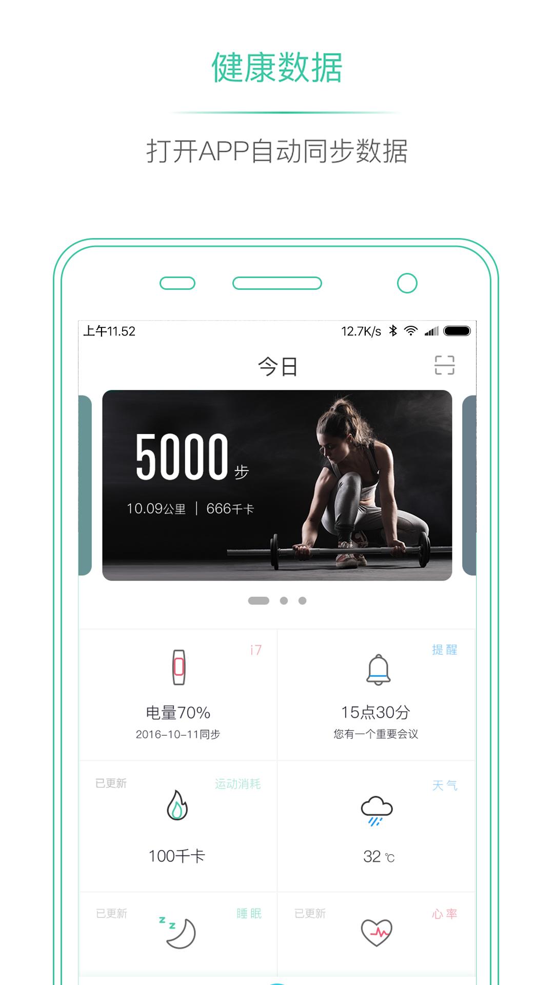 并支持将数据接入微信运动、QQ健康等平台,实现好友间的互动。
