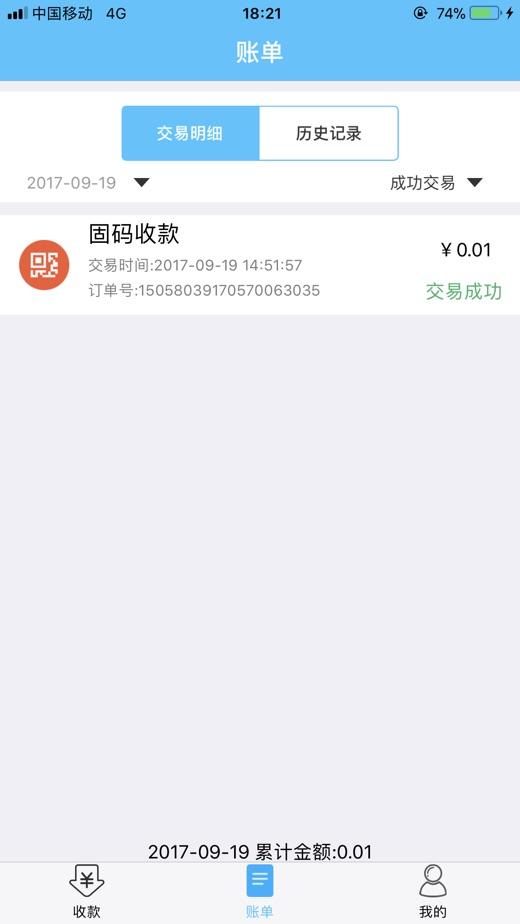 商户每一笔订单成功时都会收到APP推送的通知,实时查询订单状态。