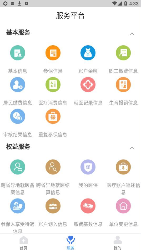我要查:基本信息、参保信息、职工缴费信息、居民缴费信息、账户明细、医疗消费信息、个人就医记录信息查询、个人账户返还、个人一次性支取信息、审核信息、跨省市异地就医备案查询、跨省市异地就医结算查询、参保人享受待遇信息、个人账户划入、生育报销查询、个人缴费基数信息、个人单位变更信息查询、个人零星报销单据信息等业务。