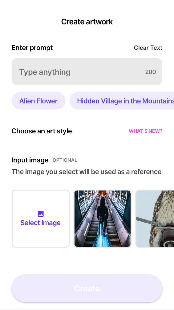 4.使用人工智能的力量创造美丽的艺术品!输入提示,选择一种艺术风格,观看Wonder在几秒钟内将您的想法转化为人工智能绘画。