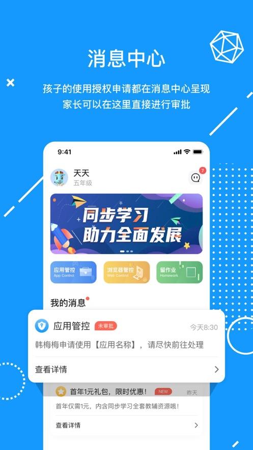 【消息中心】孩子的使用授权申请都在消息中心呈现,家长可以在这里直接进行审批;