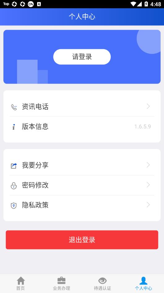 1.进入手机APP后,点击屏幕下方的【待遇认证】功能菜单;