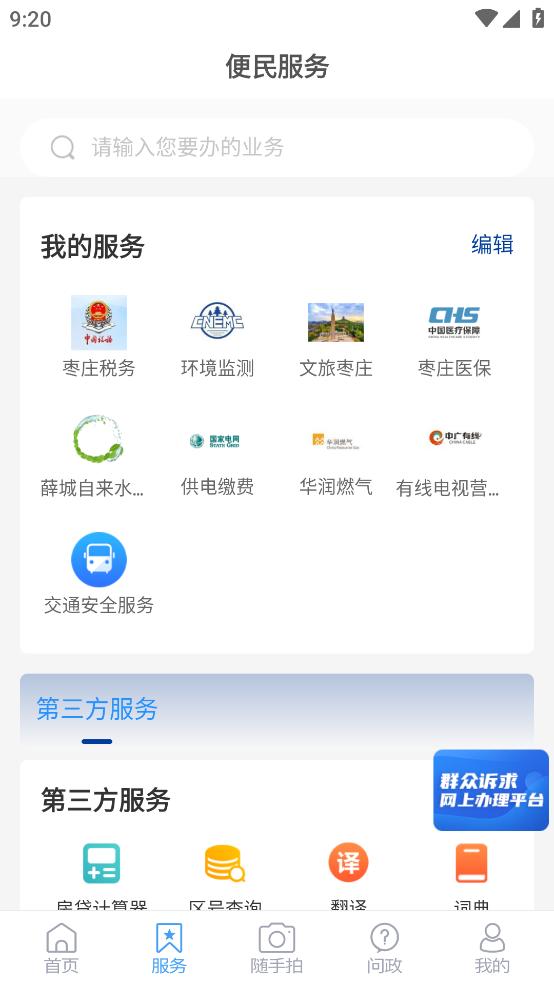 爱薛城app是薛城区手机版客户端软件,主要的功能有枣庄税务、环境监测、文旅枣庄、枣庄医保、薛城自来水缴费、供电缴费、华润燃气、有线电视营业厅查询、交通安全服务、房贷计算器、区号查询、翻译、词典、移动营业厅、联通营业厅、电信营业厅、手机归属地、快递查询、百度地图、滴滴打车、本地生活、公交查询、外卖家政、百度出行、天气预报、飞机票、火车票、PM2.5查询等等。