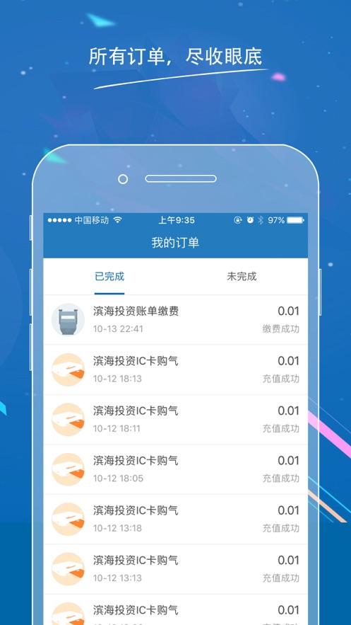 3. 雁过留痕。每笔订单记录,无需翻阅纸质账单,就能查阅所有往期燃气使用记录。