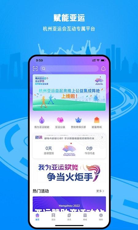 赋能亚运app是专为亚运会打造的官方app,这款软件提供了杭州亚运会的最新资讯消息,包括各种筹备情况,活动展开情况等消息。杭州市民们还可以通过这款赋能亚运app参与争当火炬手的活动,为亚运会赋能,通过绿色行为获得的能量还可以用于兑换亚运会相关的周边。