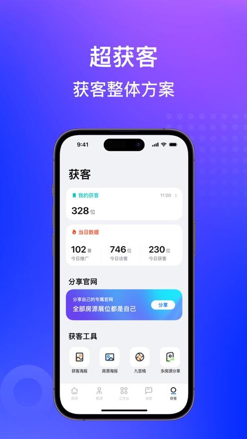 拥有房客源管理、建立获客官网、发布端口、行程分析、新房报备分销、电子签约、隐号录音等全面功能,助力房产中介公司快速成长!
