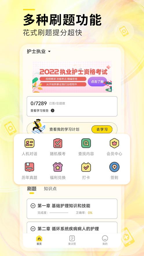 题库涵盖执业护士、初级护师、主管护师全科目,刷题功能超强大,随时随地能刷题,助力护考生高效备考!