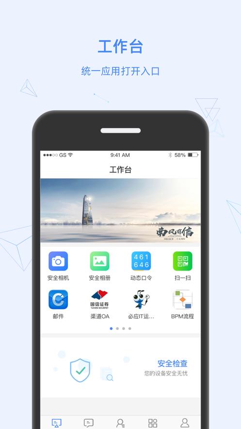 国信掌上门户app是专为国信证券制作的移动办公平台,平台拥有工作台,应用商店,消息等等丰富功能,可以帮助用户更安全高效移动协同工作。