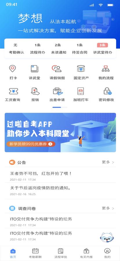 包含移动考勤、请假、审批、移动BI平台等功能,让工作沟通更高效、便捷!