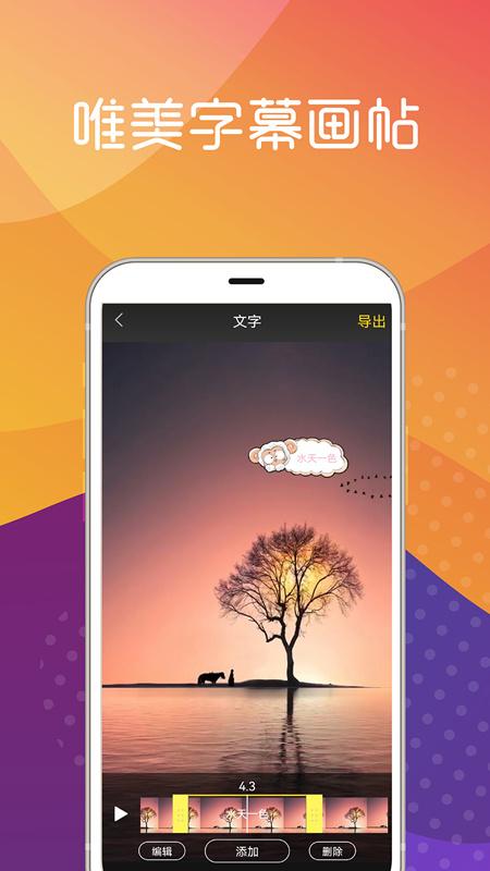 7.【视频字幕】:视频添加多段字幕,精确控制字幕时间,可选视频字幕特效、淡入淡出、滚入、字幕颜色。视频字幕透明度均可随心调节,视频文字随意拖动,视频旁白必备;