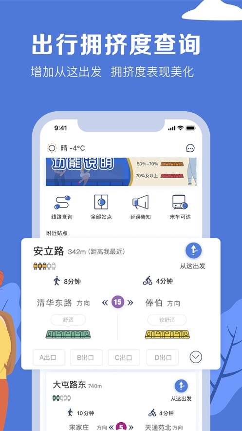 北京地铁App,为首都市民提供出行路线及票价查询、车站及车厢拥挤度查询服务。