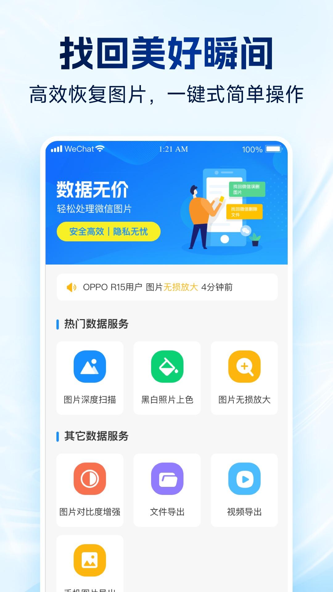 强力数据管理大师app是一款非常好用的手机数据恢复工具软件,这款软件可以帮助大家轻松的来恢复各种手机数据,而且软件还支持用户可以在线对黑白老照片进行上色,能够添加照片的色彩,一键还原当年原本的色彩,有需要的朋友欢迎大家通过本网站下载使用吧。