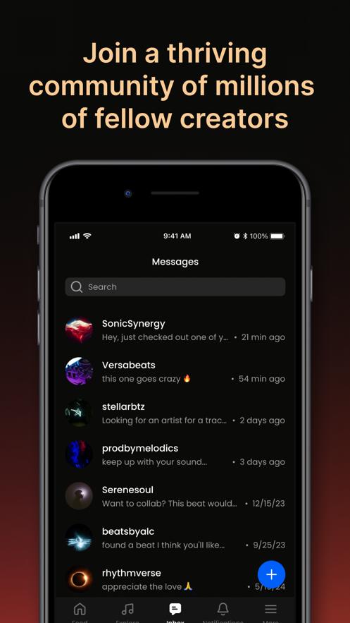 协作和联系:关注您最喜爱的艺术家、制作人、词曲作者和工程师并向其发送消息。协作和分享想法,并及时了解源中的最新版本。