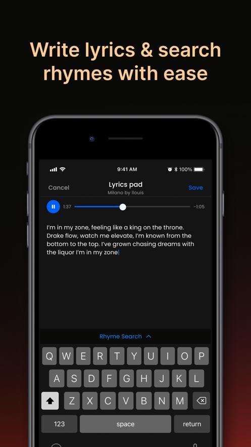 工作流程组织:使用我们内置的歌词板编写歌词并搜索押韵,并创建无限的播放列表来组织您即将进行的项目。