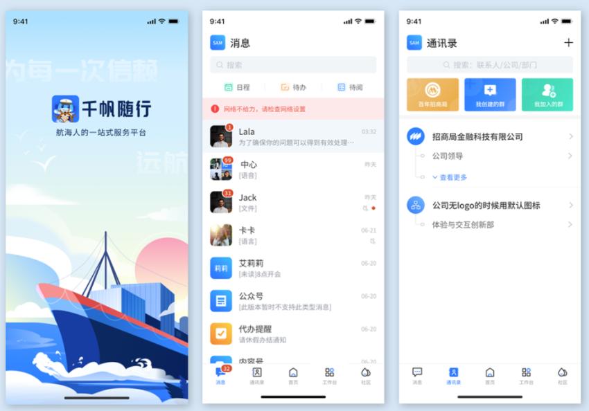“千帆随行”APP是一款专门为船员打造的智能服务移动应用,与招商轮船IMP船员管理系统相互协同,共同成为招商轮船船员管理平台的重要组成部分。