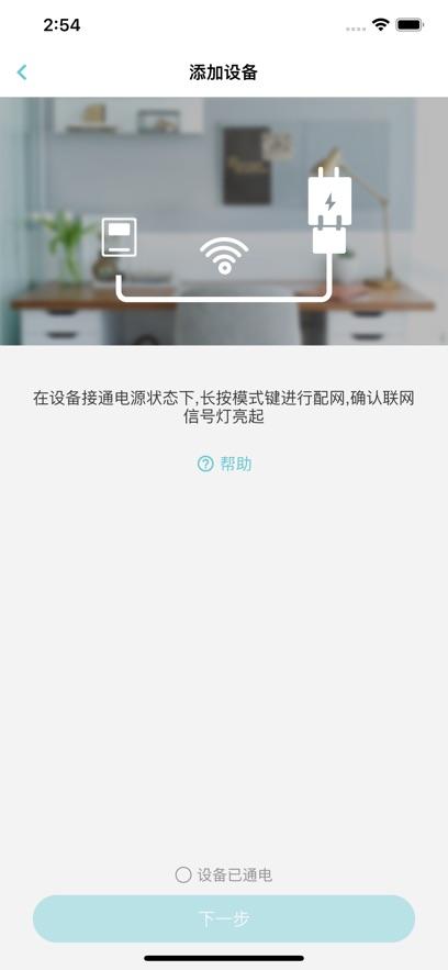 手机出现在“添加设备”界面,点击 “设备已通电”,再按下一步