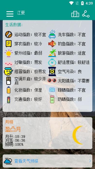 3、全方位信息:软件不仅提供天气预报,还包括空气质量、生活指数等全面信息。