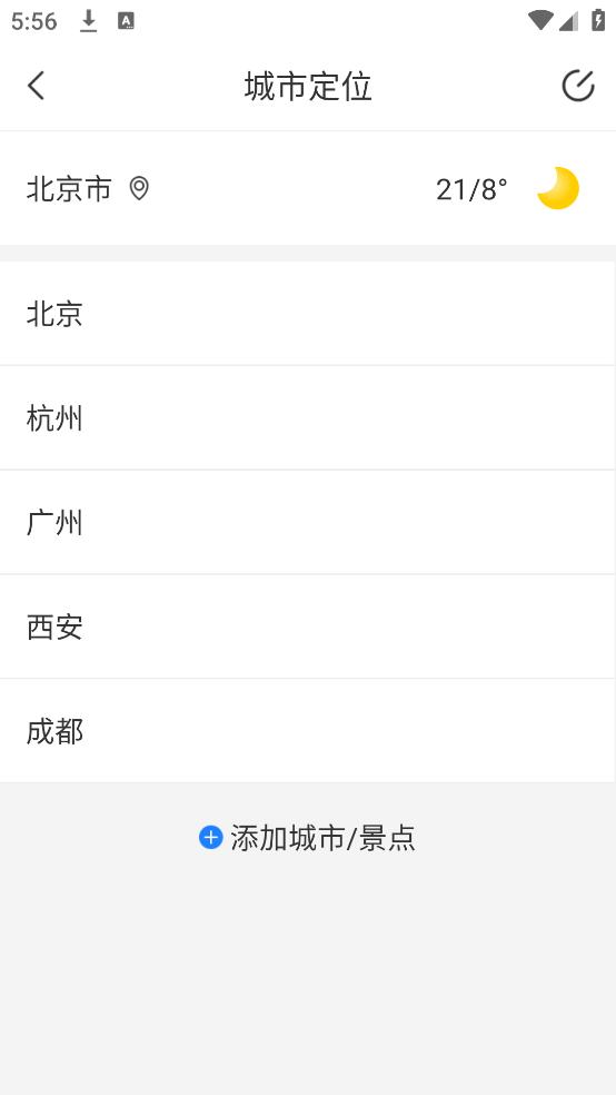 2、支持多个不同城市的信息查询,采用全天候天气天气更新。