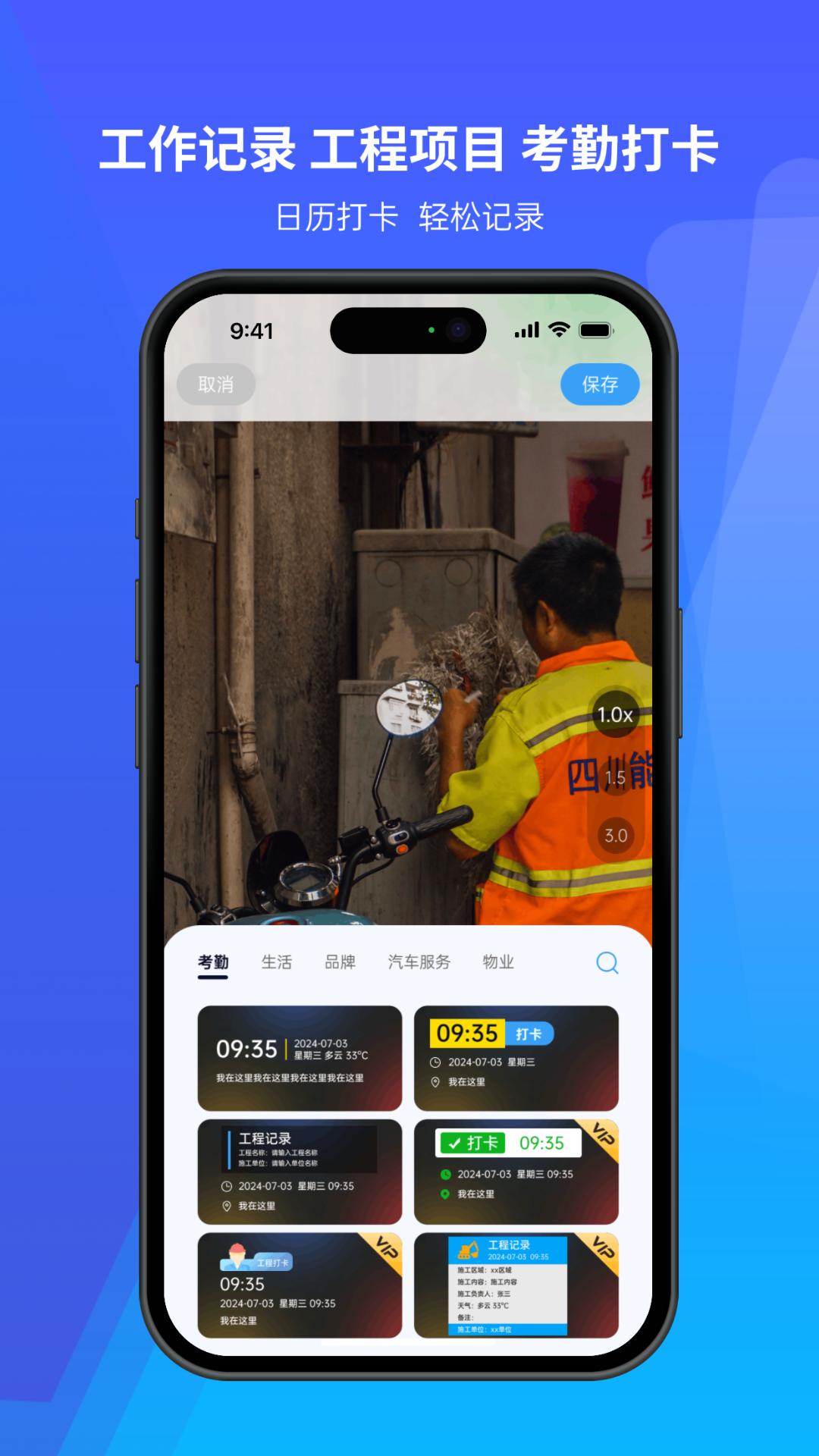 打卡日历水印相机是一款专为工作和生活设计的拍照加水印应用,具备自动添加时间、地点、天气等信息的功能,并提供海量行业模板。它不仅能满足企业管理和工程监理的专业需求,还能让个人用户轻松记录生活点滴。