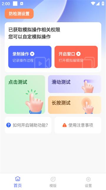 2、具备了点击、连点、滑动、长按、双击、自动连点等挂机功能,轻松实现一键启动和关闭;