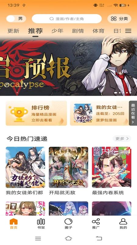 3、预告:新漫上架预告,最新的漫画资讯,作者分享的漫画信息。