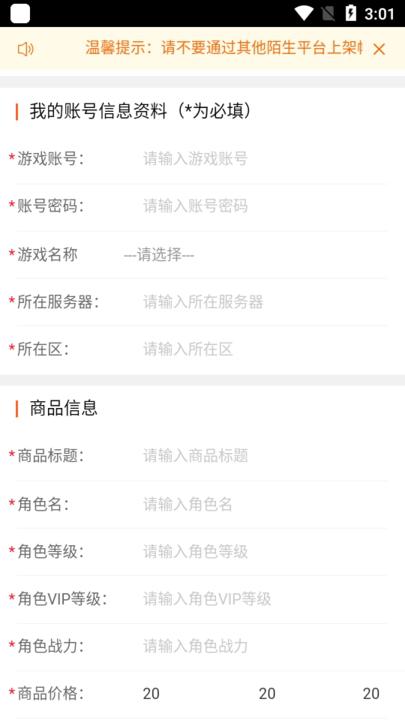 3、自定义价格,挑选其他用户的商品,大家注意不要再其他第三方软件上上传账号密码。
