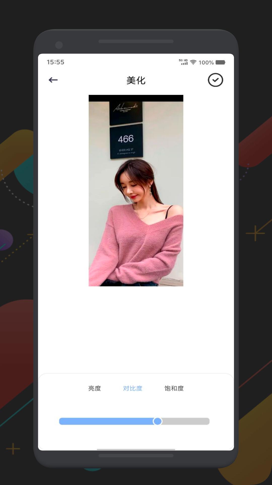 可自由进行图片编辑美化,自由调整图片的亮度、对比度以及饱和度等参数;