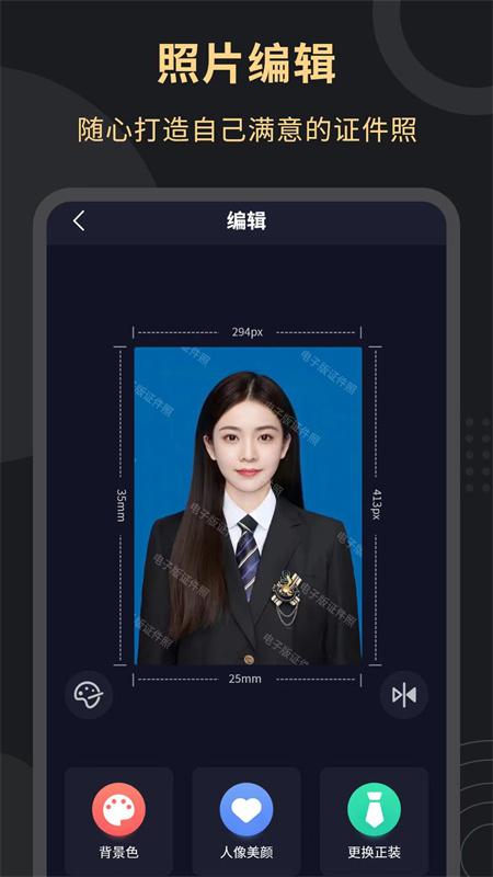 4、更换正装:不满意原有服装造型?不是穿的正装无法拍摄证件照?不用担心!多尺寸电子证件照让您可以在证件照中轻松更换正装,做出正装证件照,让您的形象更符合要求,更加专业。