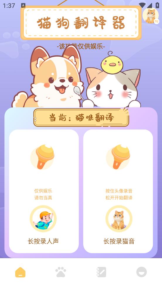 2、支持录音翻译功能,用户在线即可快速使用,从而可以快速了解猫咪语言意思,更好的交流。