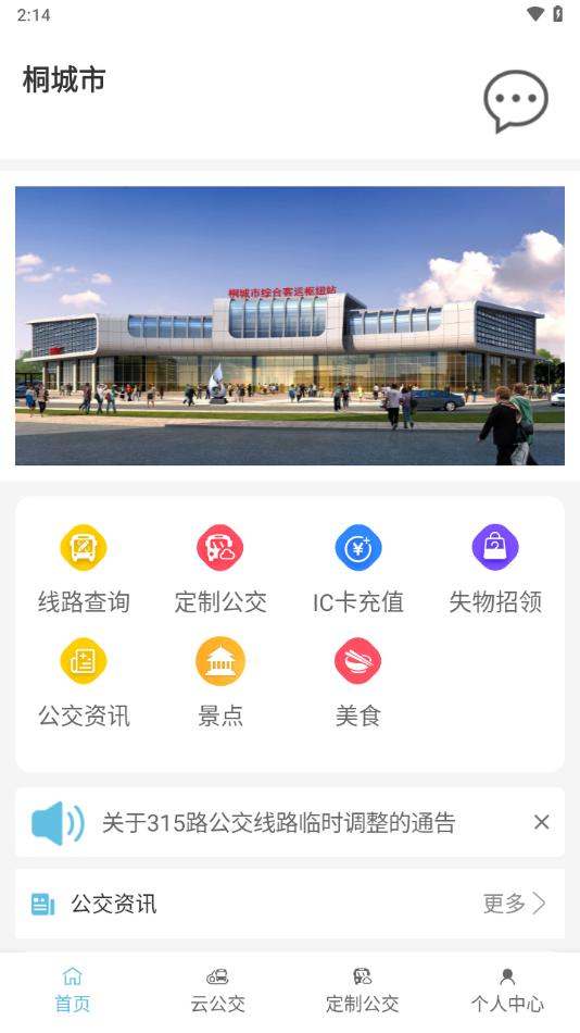 桐城掌上公交app是一款智慧公交助手,软件拥有线路查询,定制公交,IC卡充值,公交资讯等等功能服务,可以帮助用户更智慧公交出行。