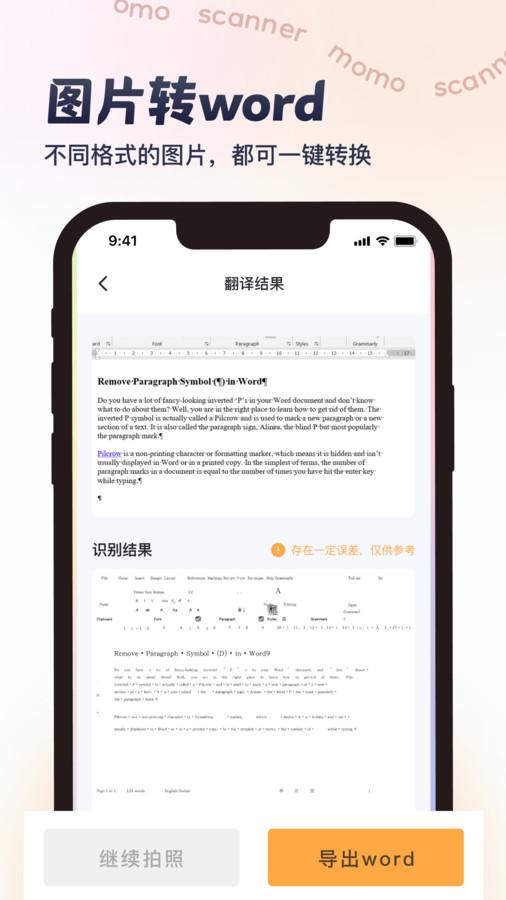 墨茉扫描APP是一款功能十分强大的扫描工具软件,软件内拥有非常强大的扫描功能,超多功能满足你的使用需要,随时轻松体验,一键即可轻松的开启扫描识别,识别结果也很精准。