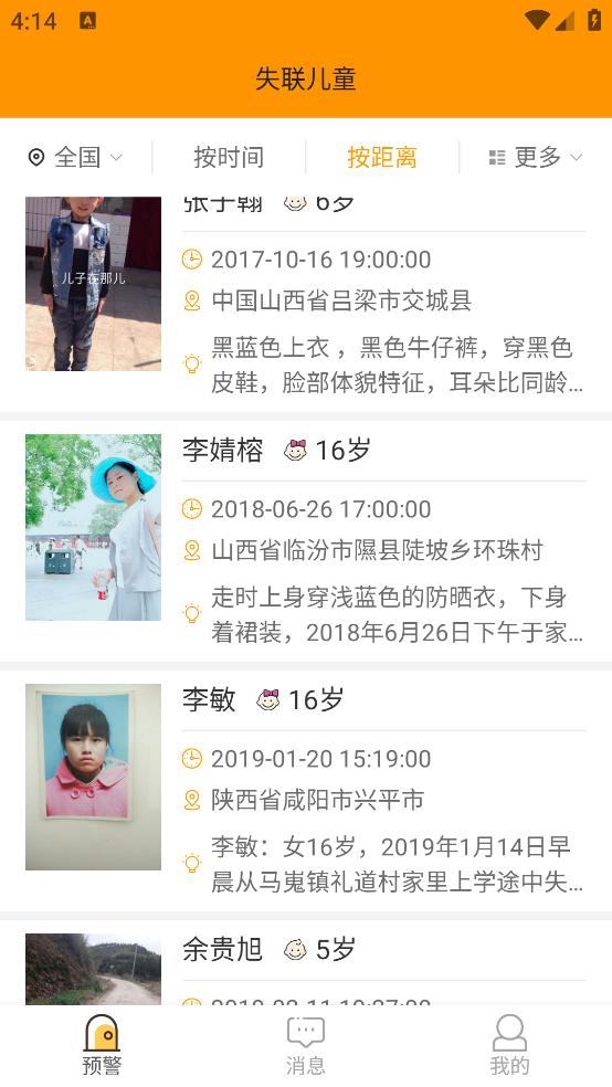 3、开启失踪预警,可以在周边地区联合全民一起寻找失踪儿童