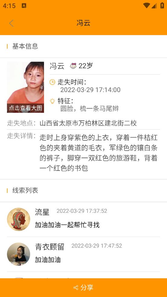 5、通过平台一键发布儿童失踪信息,在最短时间内传播消息线索