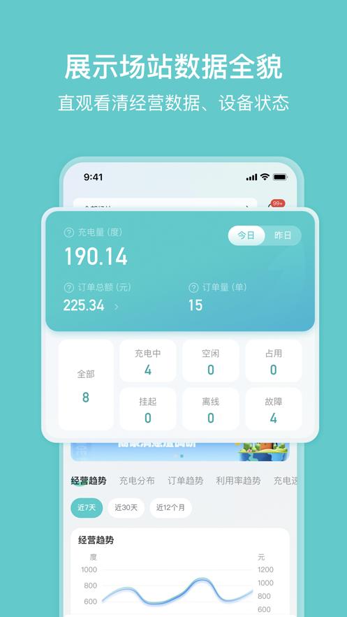 小桔慧充app是滴滴出行旗下充电品牌,拥有场站数据展示,场站设备健康,场站经营等等丰富功能,可以帮助更好的充电站经营管理。